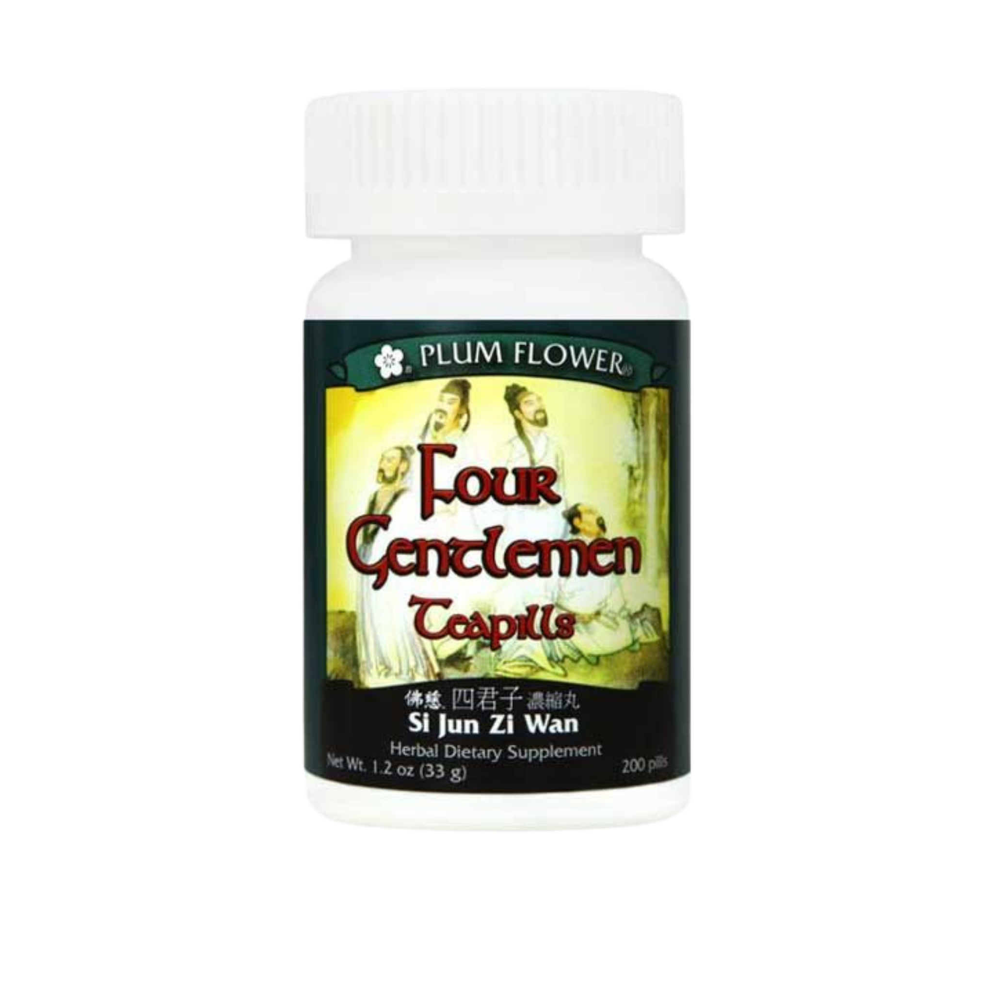 Plum Flower – Four Gentlemen Teapills (Si Jun Zi Wan) is a classical formula used in the practice of Traditional Chinese Medicine for tonifying Spleen & Lung qi and dispelling accumulated dampness. It is useful for addressing weak digestion, chronic gastritis, and other digestive disorders characterized by such symptoms as bloating, loose/erratic stools, fatigue, lethargy, and low vitality.